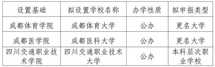 12月19日,四川省教育厅发布了《关于2025年第四批拟申报高校设置事项的公示》,成都体育学院、成都医学院拟更名大学;四川交通职业技术学院拟更名为四川交通职业技术大学。