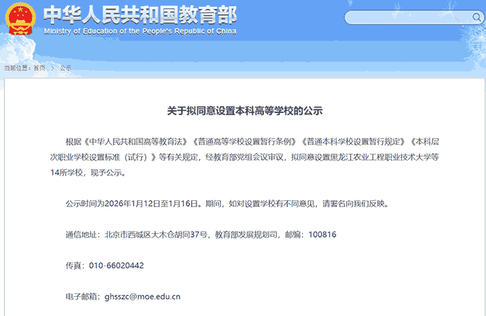 1月12日,据教育部网站消息,教育部拟同意设置14所本科高等学校。根据公示名单湖州师范学院更名湖州师范大学。