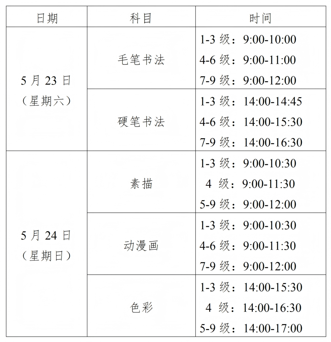 2026年5月书画等级考试(CCPT)报名时间为3月30日9:00-4月13日16:00。