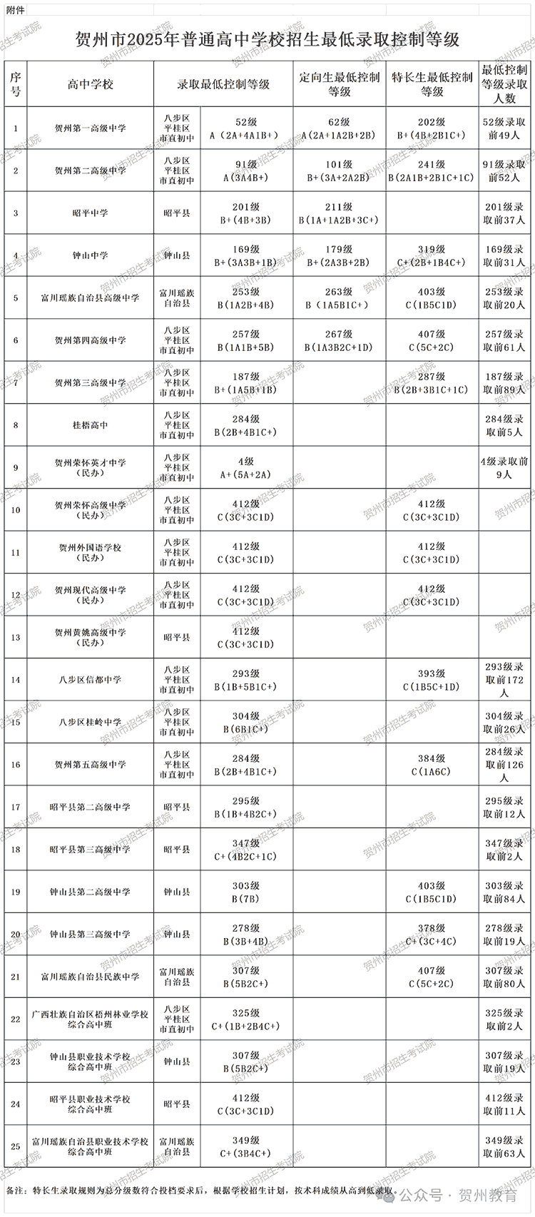 | 贺州第三高级中学 | 187级B+(1A5B+1B) |