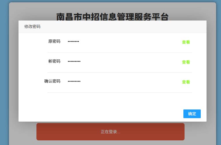 首次登录后,弹出修改密码界面,考生可修改密码。