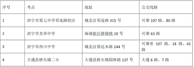 考生可于3月20日下午15:00-17:00前往考点,在不进入考点的情况下,通过校门口摆放的《考场平面示意图》,查看考试通道入口及考场具体位置,提前了解考场位置及周边环境。同时,请提前熟悉考点周边环境,安排好食宿及行程,避免因雨雪天气、道路交通或其他不可预测的原因影响正常考试。考试当天前往考点应预留足够时间。考点地址及乘车路线见下表: