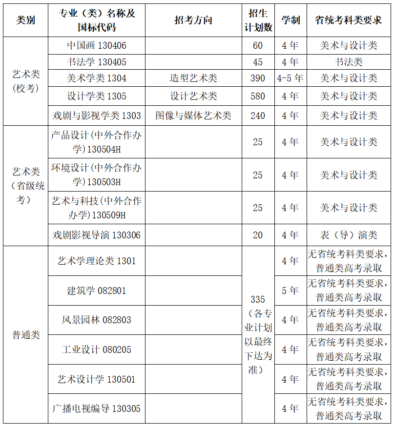 5.艺术类校考、艺术类省级统考招生专业面向各专业对应科类(本科)省级统考合格生源。